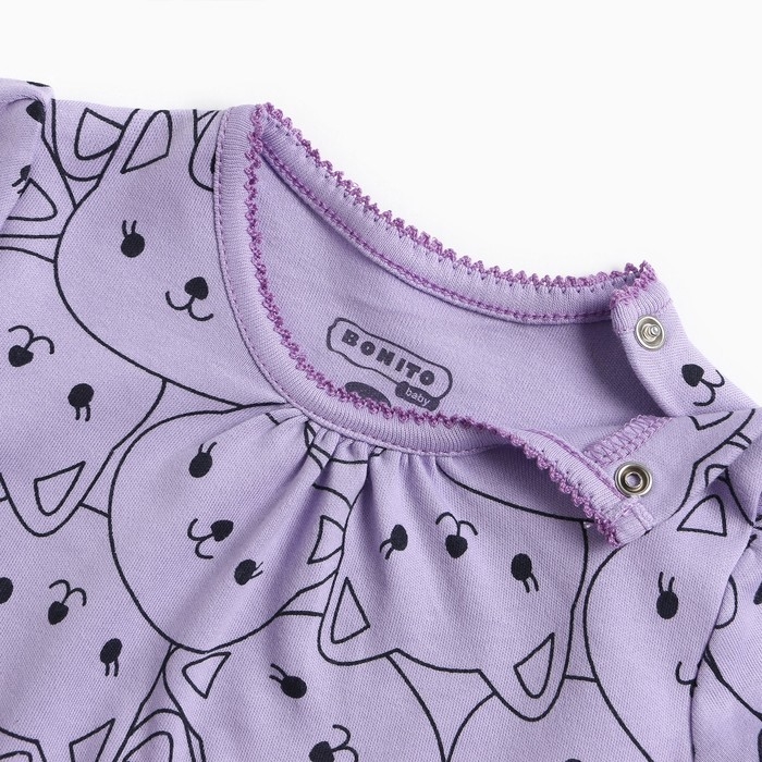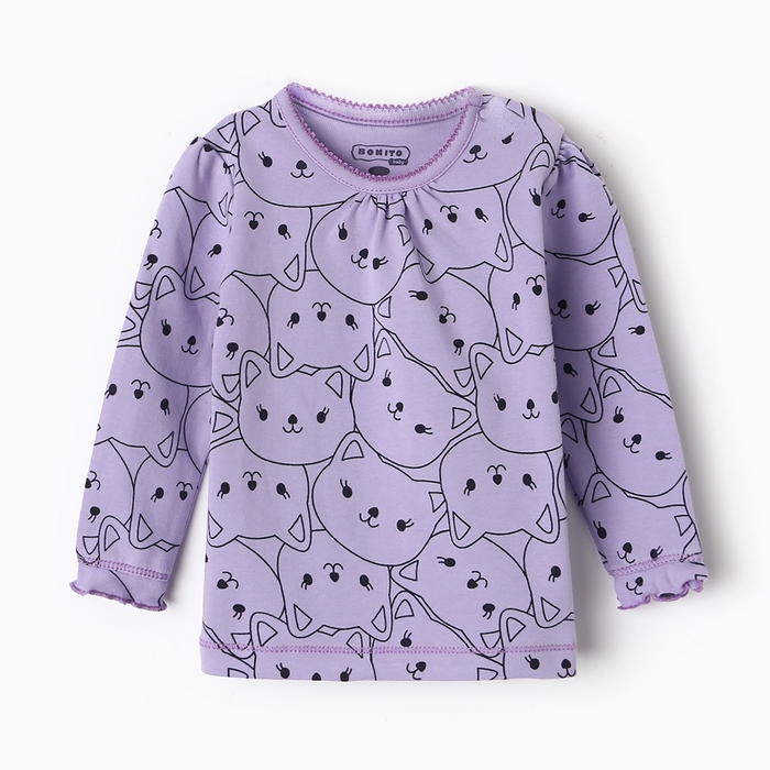 Лонгслив детский, цвет лиловый/котята, рост 62 см