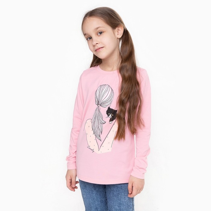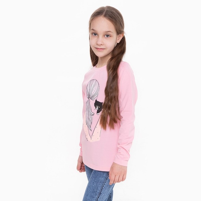 Лонгслив для девочки, цвет пудра, рост 146 см