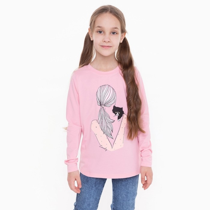 Лонгслив для девочки, цвет пудра, рост 158 см