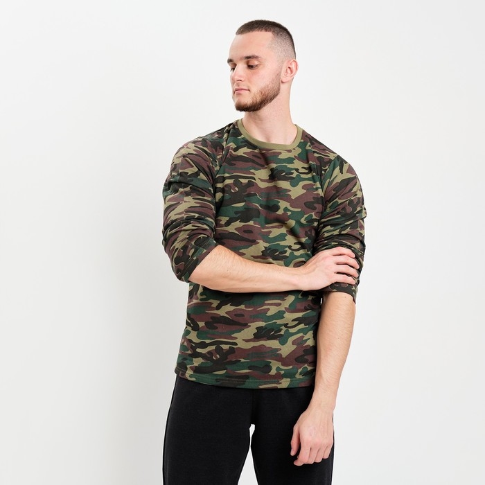 Лонгслив мужской, цвет зелёный камуфляж/пятна МИКС, размер 52