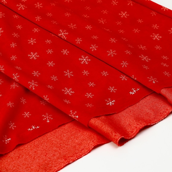 Лоскут Велюр на красном фоне, белые снежинки, 60 × 50 см