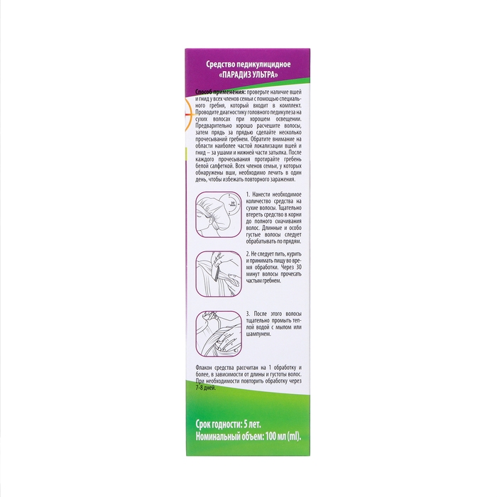 В упаковке также находится гребень, который помогает удалить мертвых вшей и гнид после обработки лосьоном. Гребень имеет удобную форму и легко проникает в волосы, обеспечивая эффективное удаление паразитов.