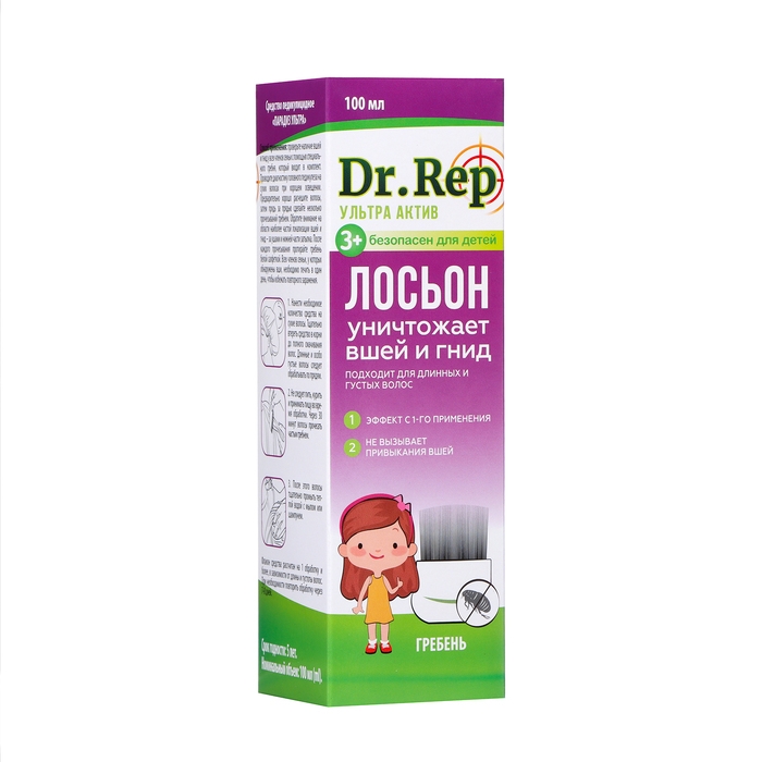 Лосьон Доктор Реп средство педикулицидное Парадиз Ультра с гребнем - это надежный и удобный продукт, который поможет избавиться от вшей и гнид.