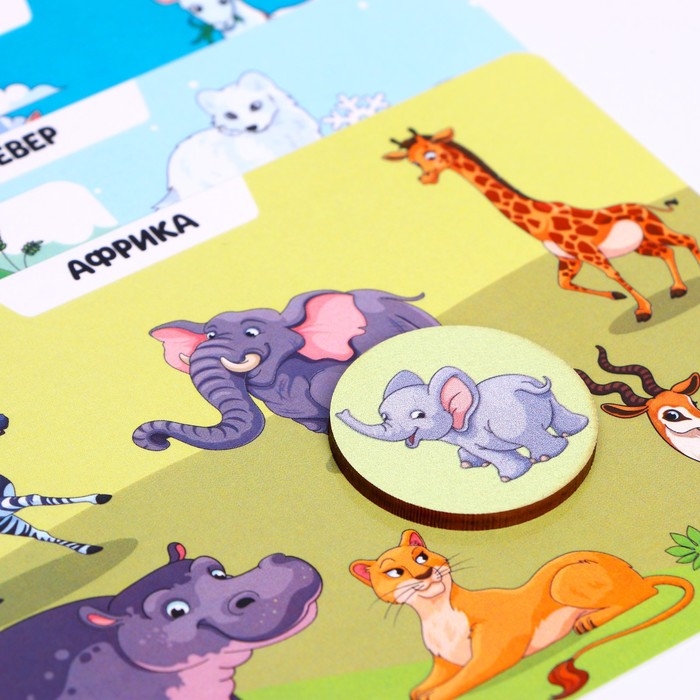 - Дайте ребёнку возможность самостоятельно понять, что именно изображено на фишке и как называют это животное и его детёныша.