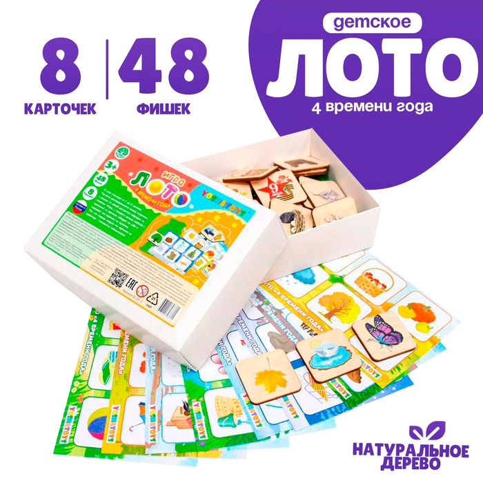 Лото детское «4 времени года» квадратные фишки