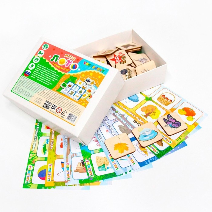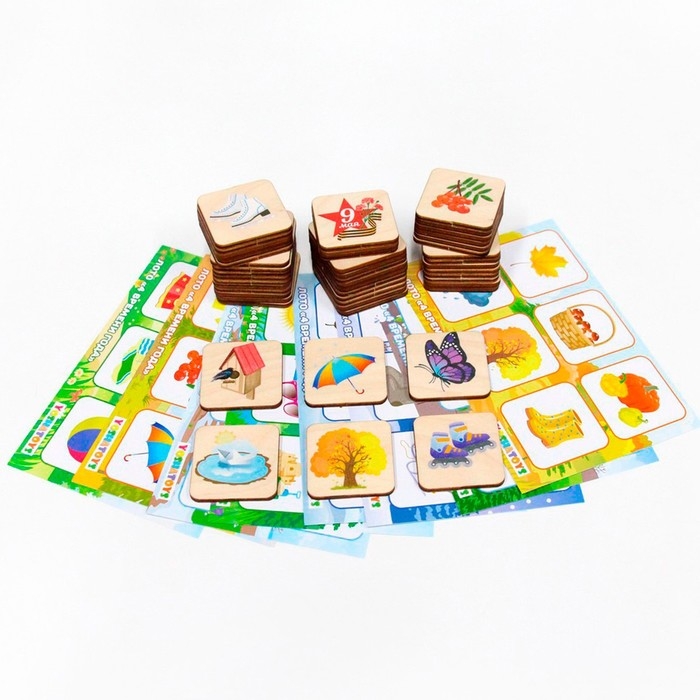 Детское лото познакомит ребёнка с временами года. Малыш запомнит последовательность сезонов, запомнит признаки зимы, весны, лета и осени. Игра поможет весело и интересно провести время всей семьёй.