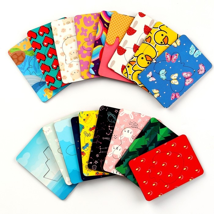 Данная игра — усложненный вариант набора «Досочки Сегена» № 1 и № 2, так как в ней пазлы-вкладыши имеют не только разный цвет, но и более сложную форму.
