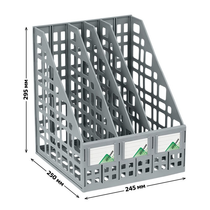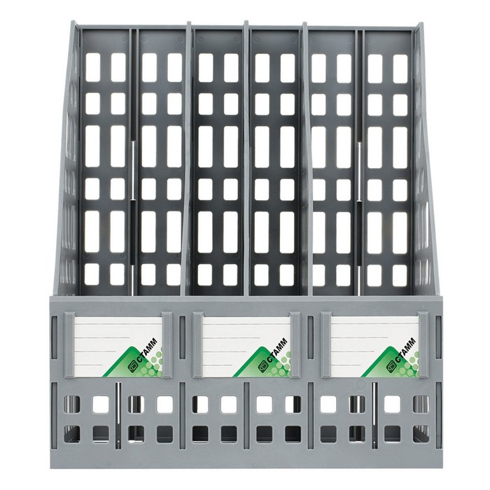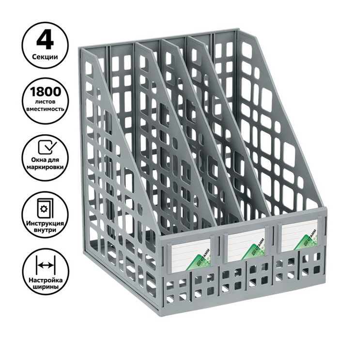 Лоток для бумаг cборный, вертикальный, 4 отделения, серый