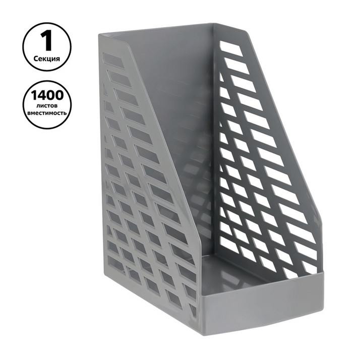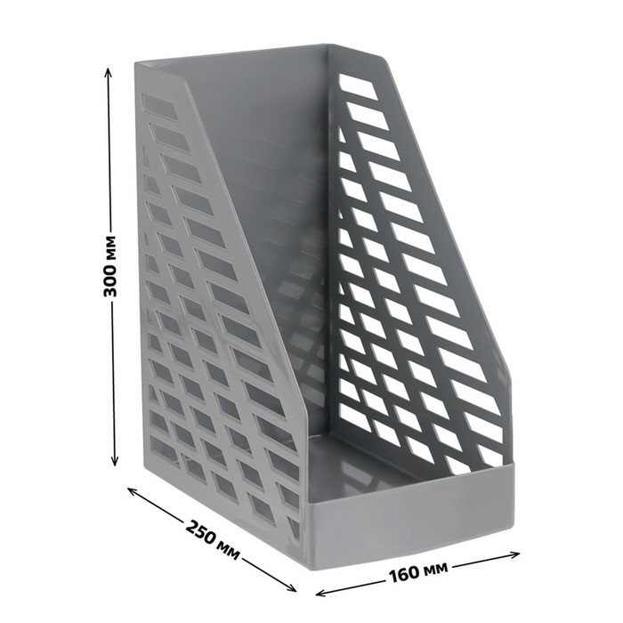 Лоток для бумаг вертикальный XXL, ширина 16 см, прочный, серый