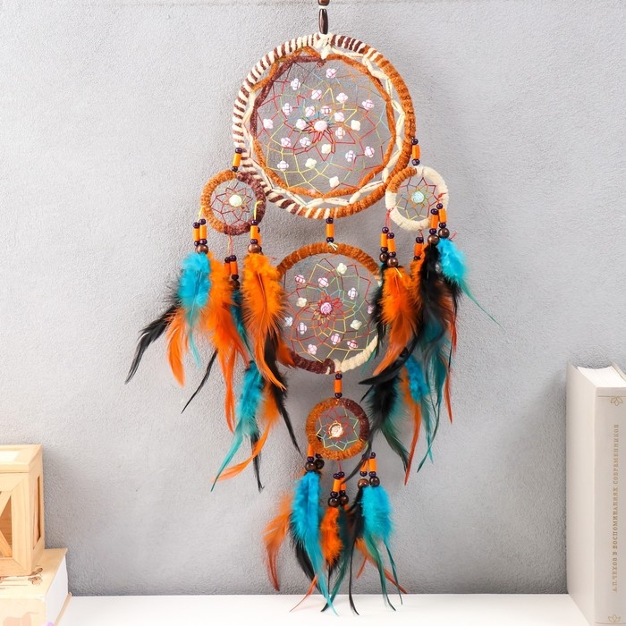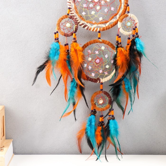 Ловец снов 5 колец "Индейский талисман" d=5 см, d=11 см, d=16 см 68х16 см