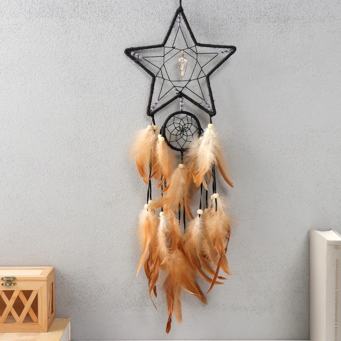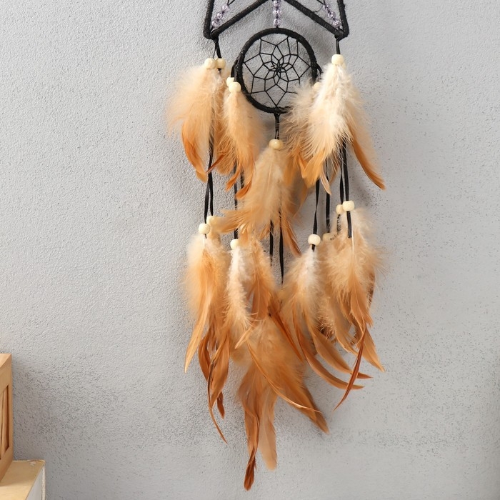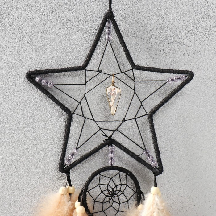 Ловец снов двойной "Звезда. Ракушка" чёрно-бежевый 20х72 см