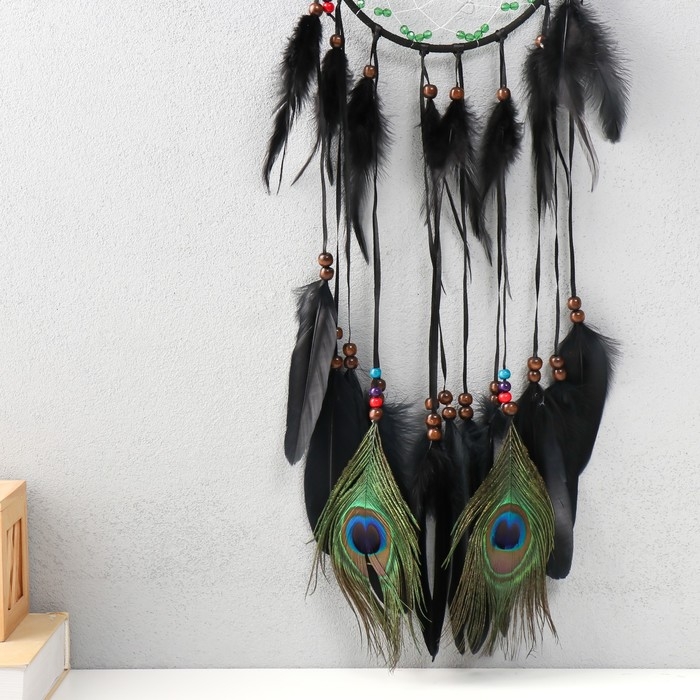 Ловец снов "Круг. Перья павлина" d=17 см 17х74 см
