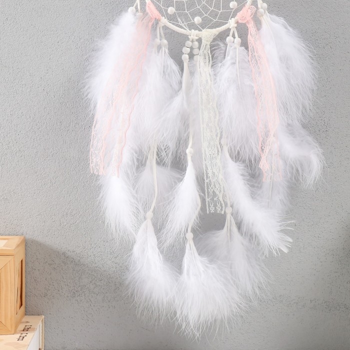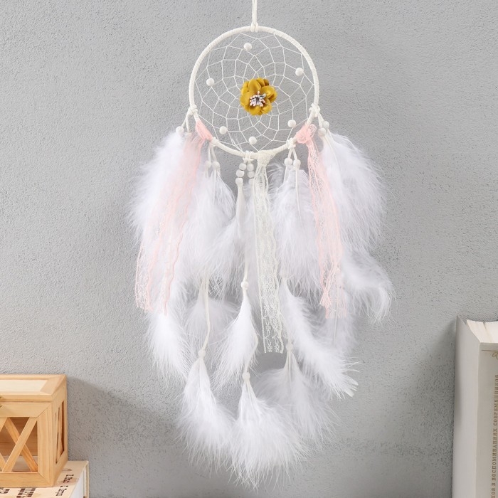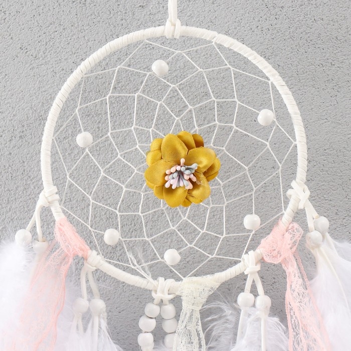 Ловец снов "Паутинка с цветком" пёрышки и тесьма 39х11 см