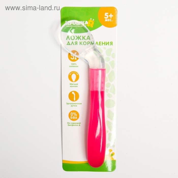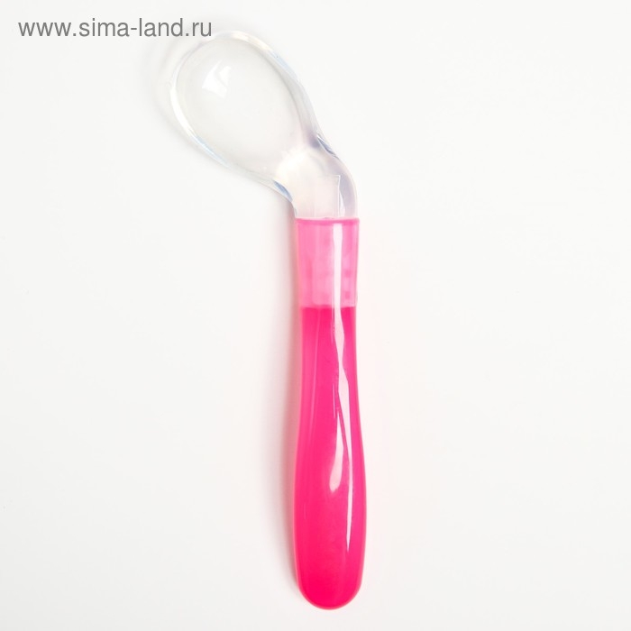 Ложка детская силиконовая «Изогнутая» для кормления, от 5 мес., цвет розовый