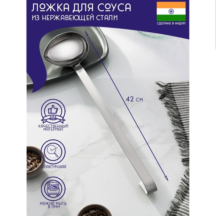 Ложка для соуса из нержавеющей стали Доляна «Индия», 90 мл, 42 см