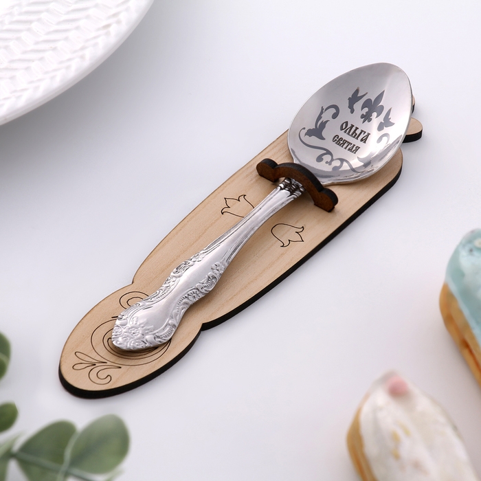 Ложка именная, чайная, с гравировкой "Ольга", h=14
