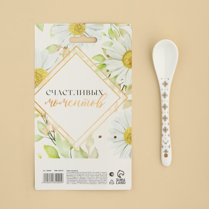Ложка сувенирная «Счастье живёт на кухне», керамика, 2,5 х 12,5 см.