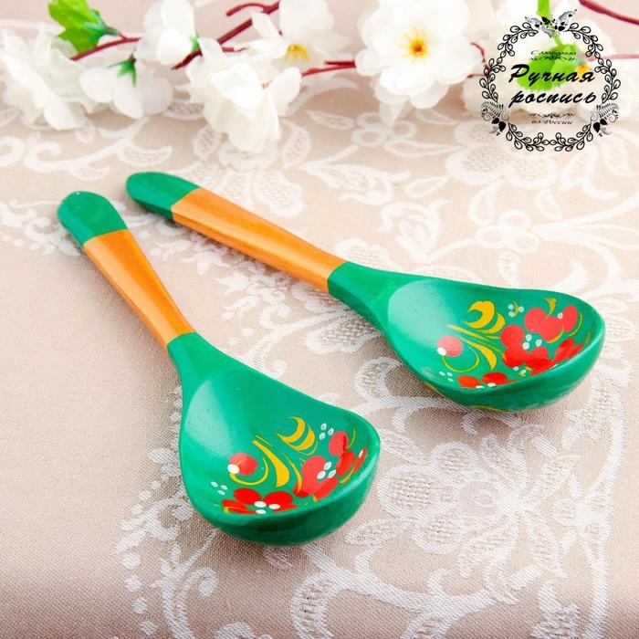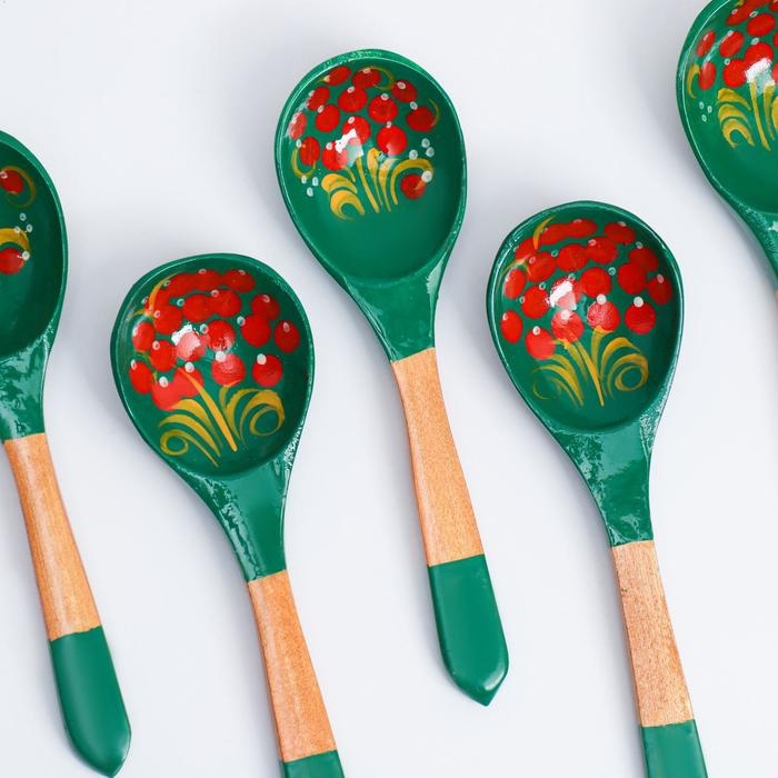 Ложка «Зеленушка», салатная, 6×21, хохлома
