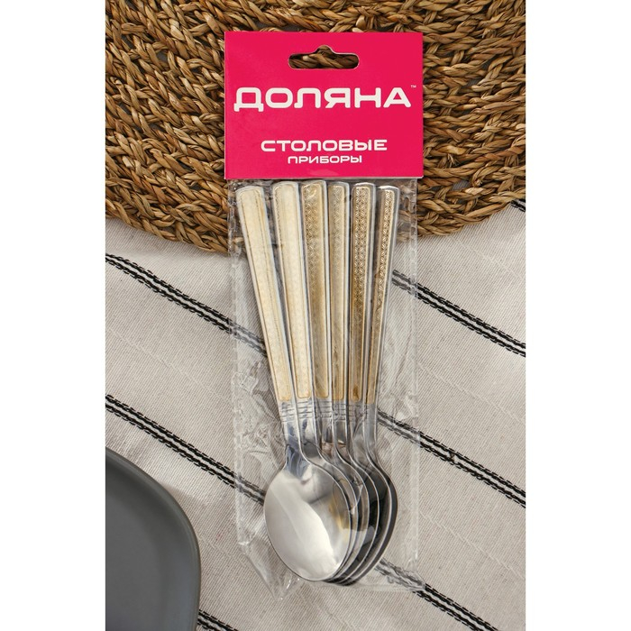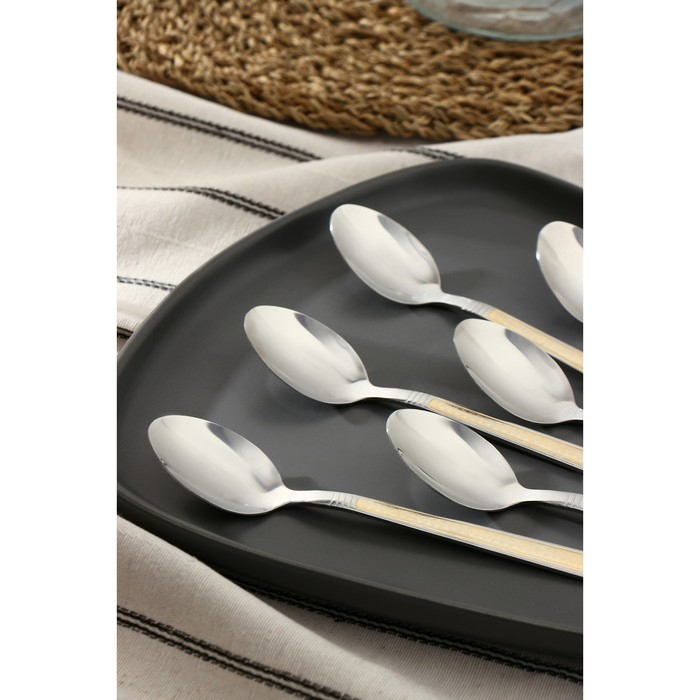 Ложки чайные из нержавеющей стали Доляна «Перту Золото», длина 15 см, 6 шт, цвет серебряный