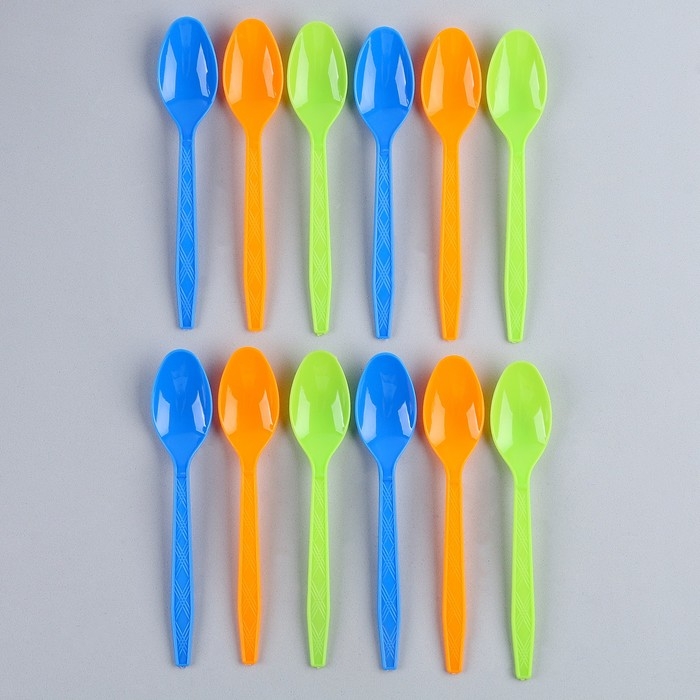 Ложки пластиковые, в наборе 12 шт., цвета МИКС