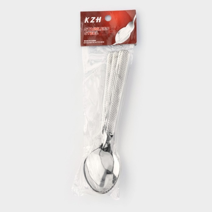 Ложки столовые «Крапинка», длина 18 см, 12 шт, цвет серебряный