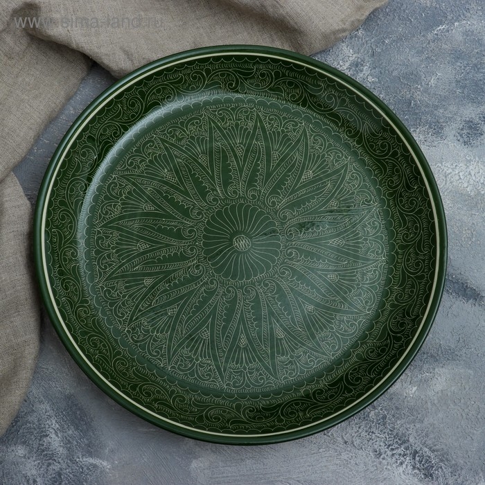 Ляган круглый, 36 см, риштанские узоры, зелёный