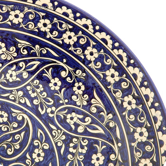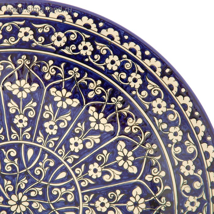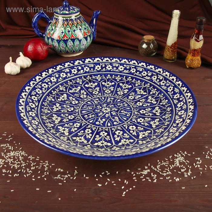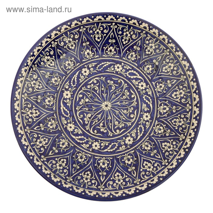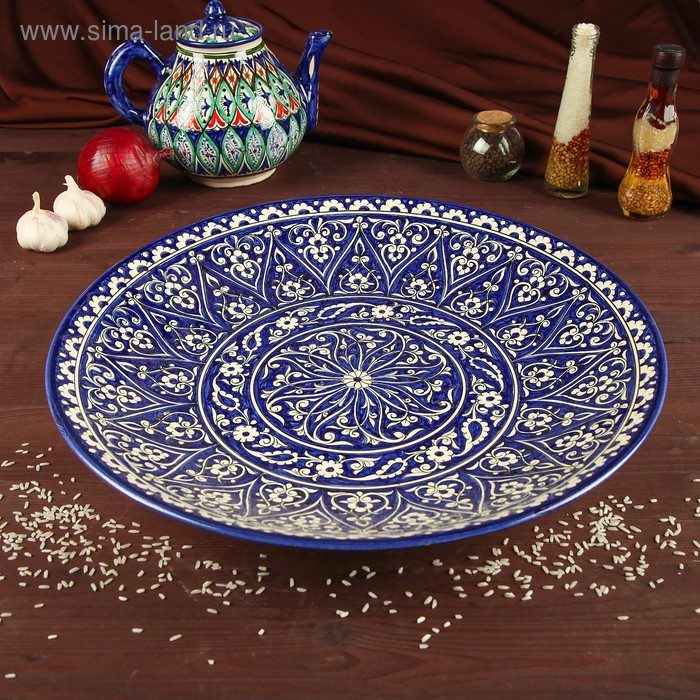 Ляган круглый Риштанская Керамика, 41см, кара калам, микс