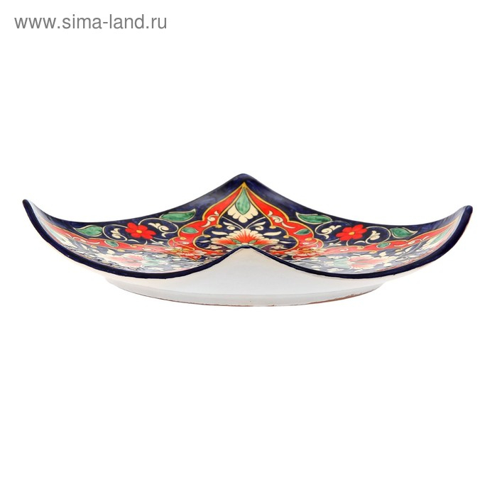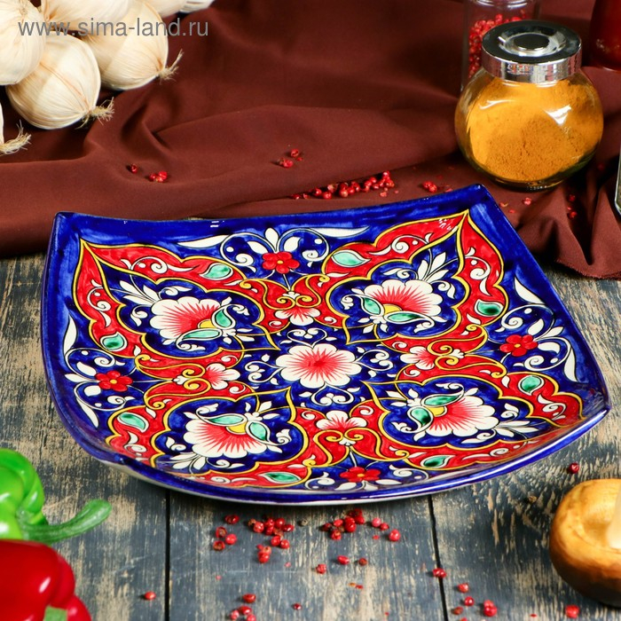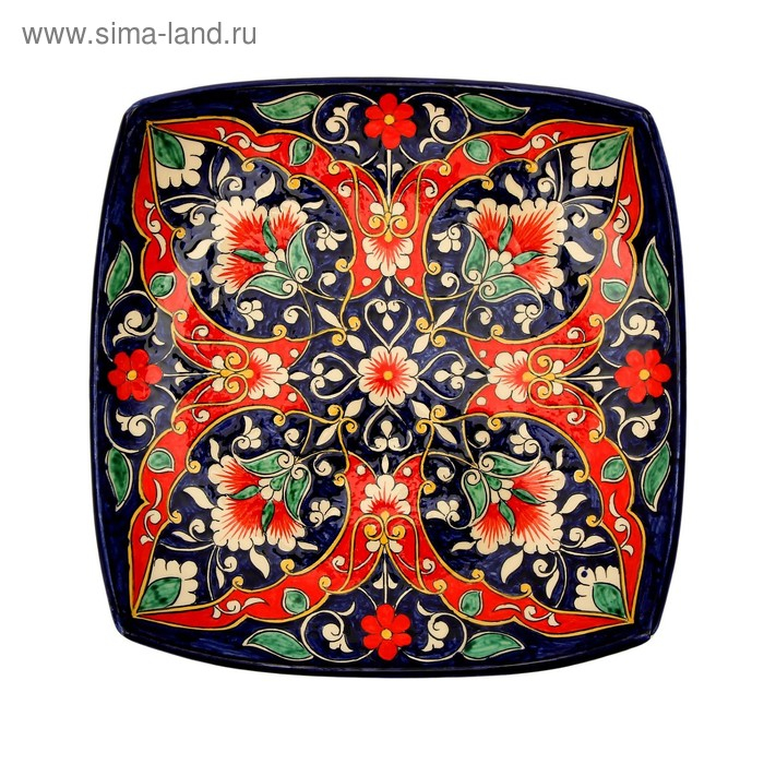 Ляган Риштанская Керамика "Цветы", 25 см, квадратный, красный