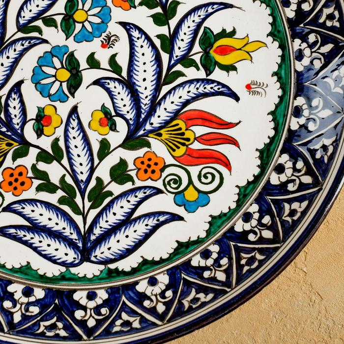 Ляган Риштанская Керамика "Цветы", 32 см, синий
