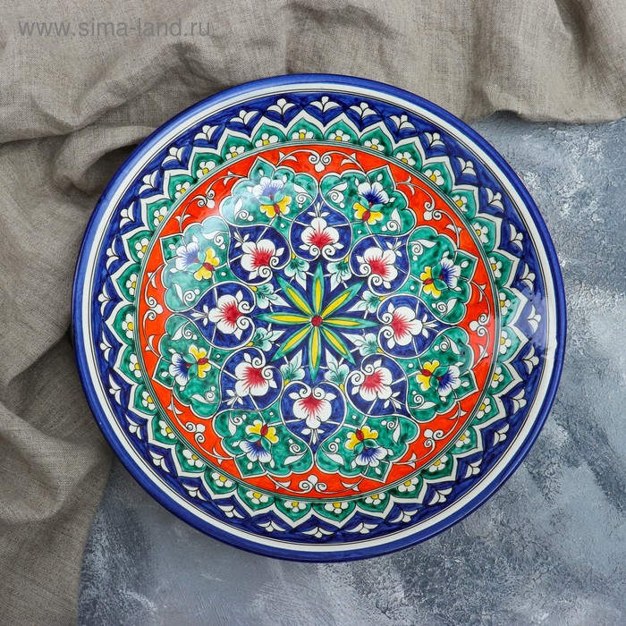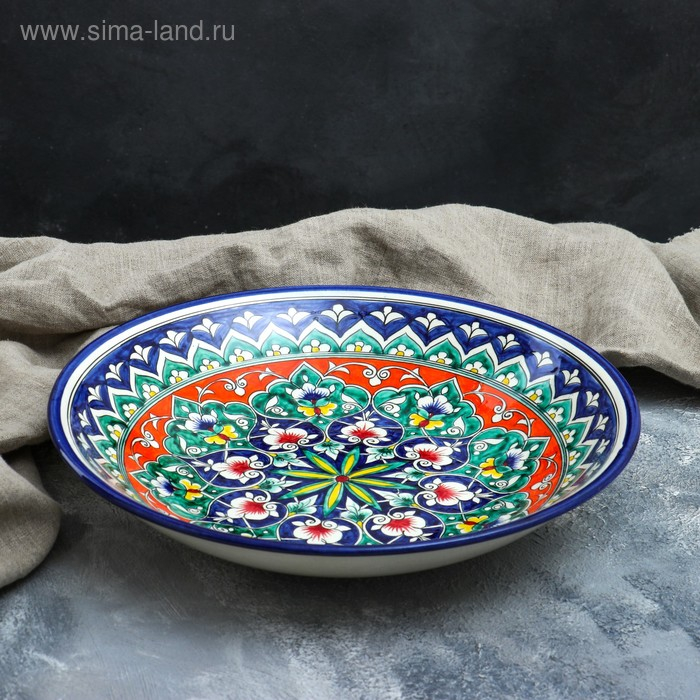 Ляган Риштанская Керамика "Цветы", 33 см, синий