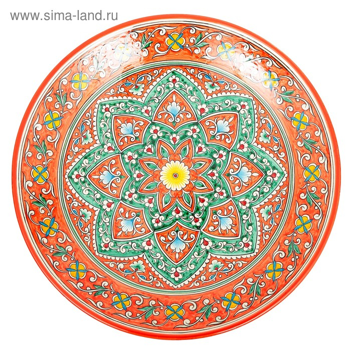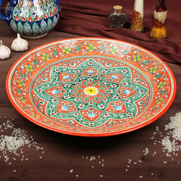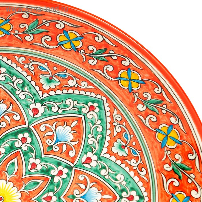 Ляган Риштанская Керамика "Цветы", 42 см, оранжевый