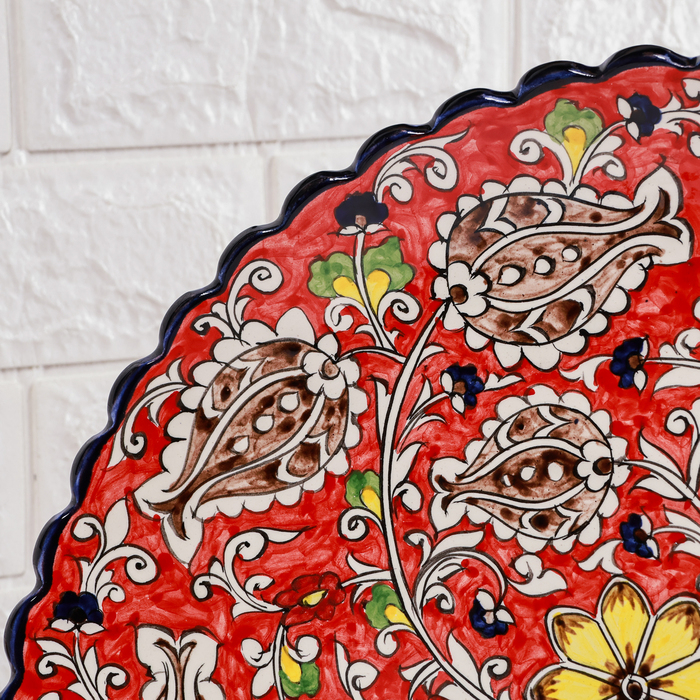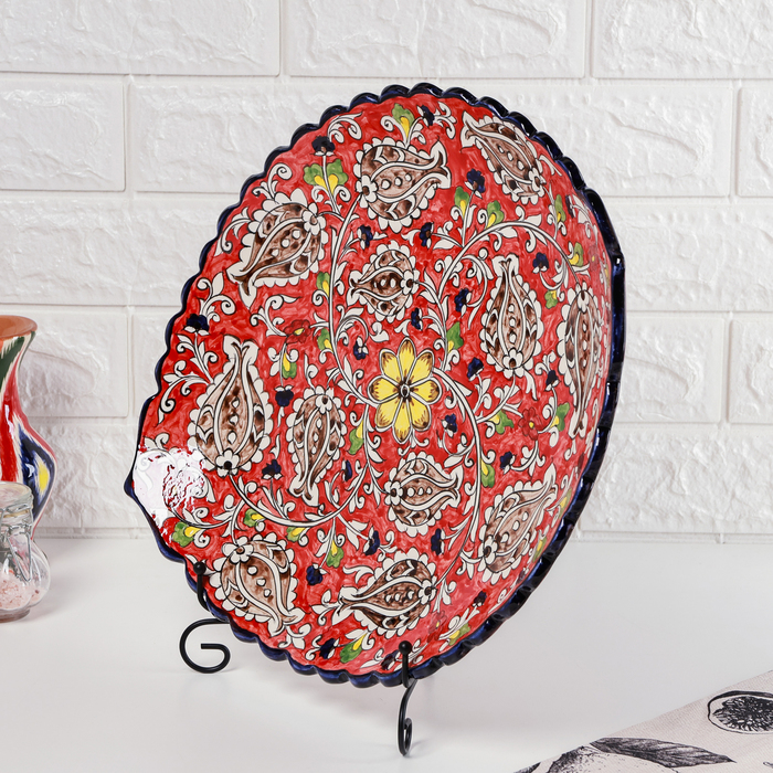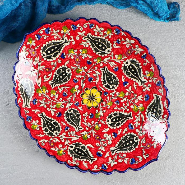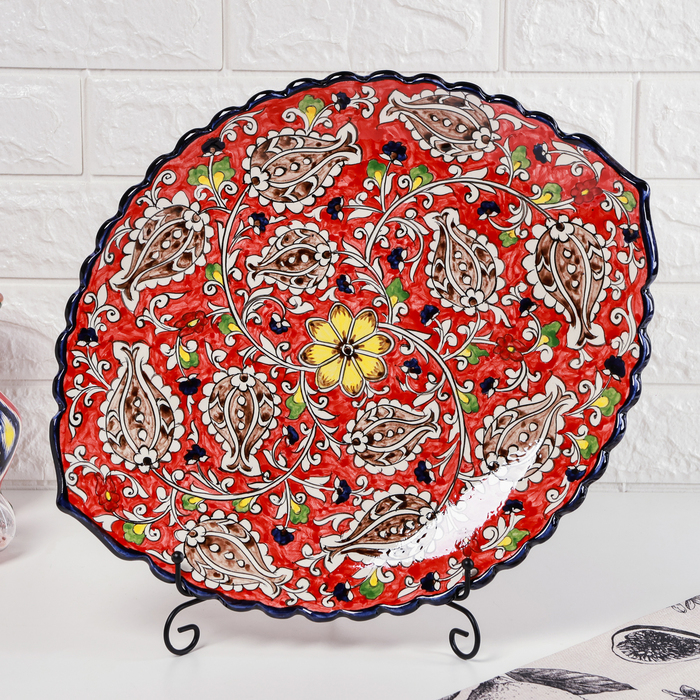 Ляган Риштанская Керамика "Цветы", 42 см, овальный, рифлёный
