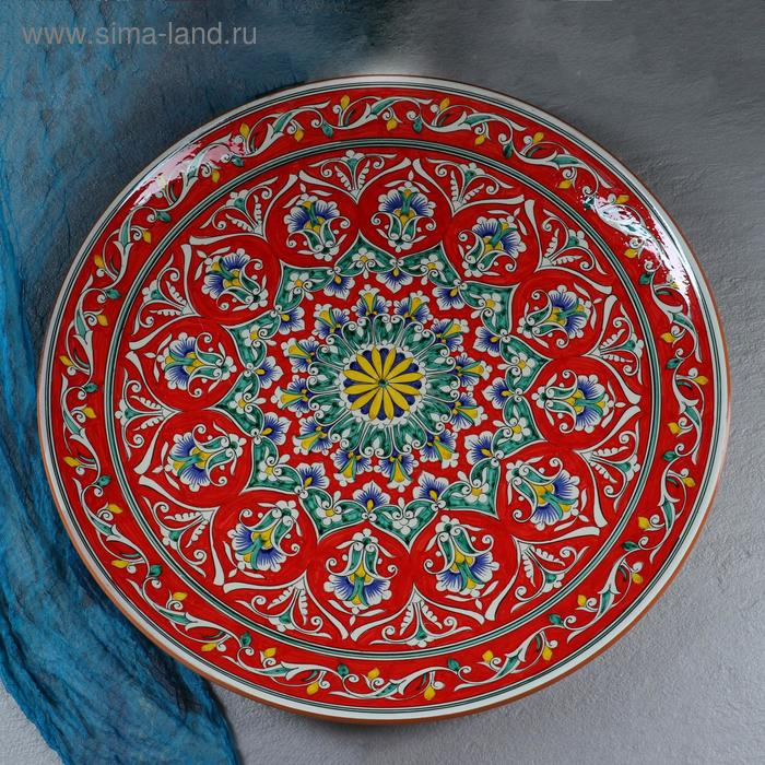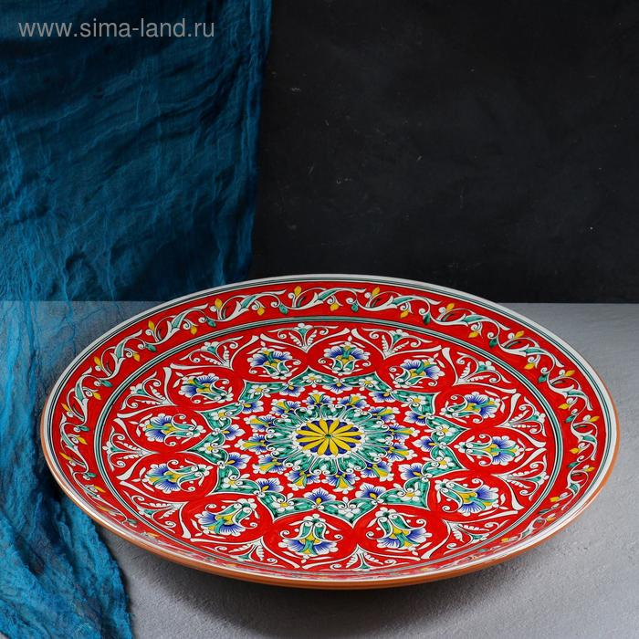Ляган Риштанская Керамика "Цветы", 55 см, красный