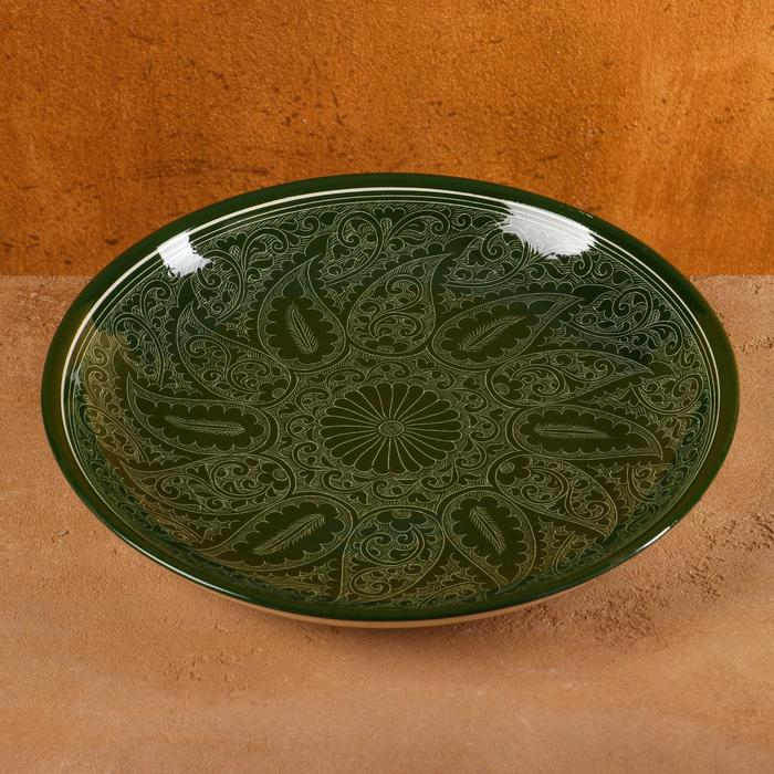 Ляган Риштанская Керамика "Узоры", 27 см, зелёный