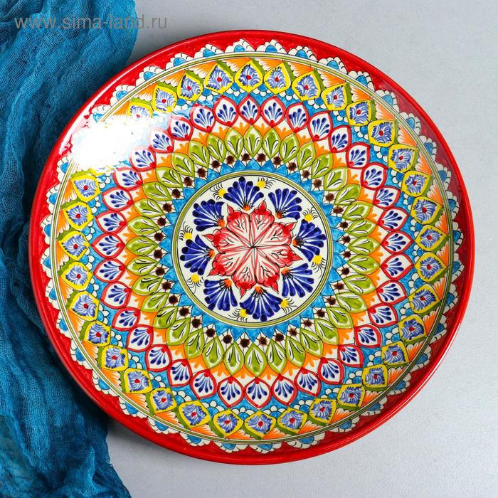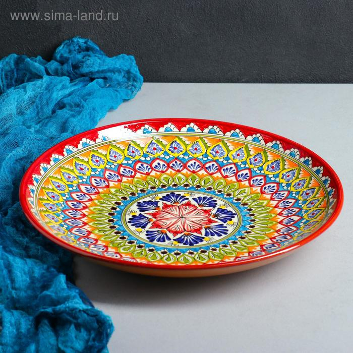 Ляган Риштанская Керамика "Узоры", 32 см, красный