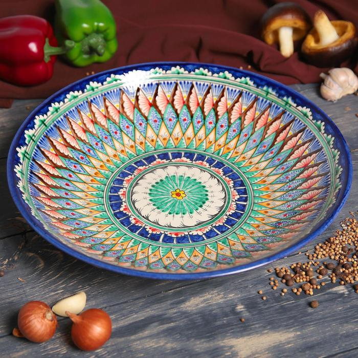 Ляган Риштанская Керамика "Узоры", 33 см, глубокий, синий