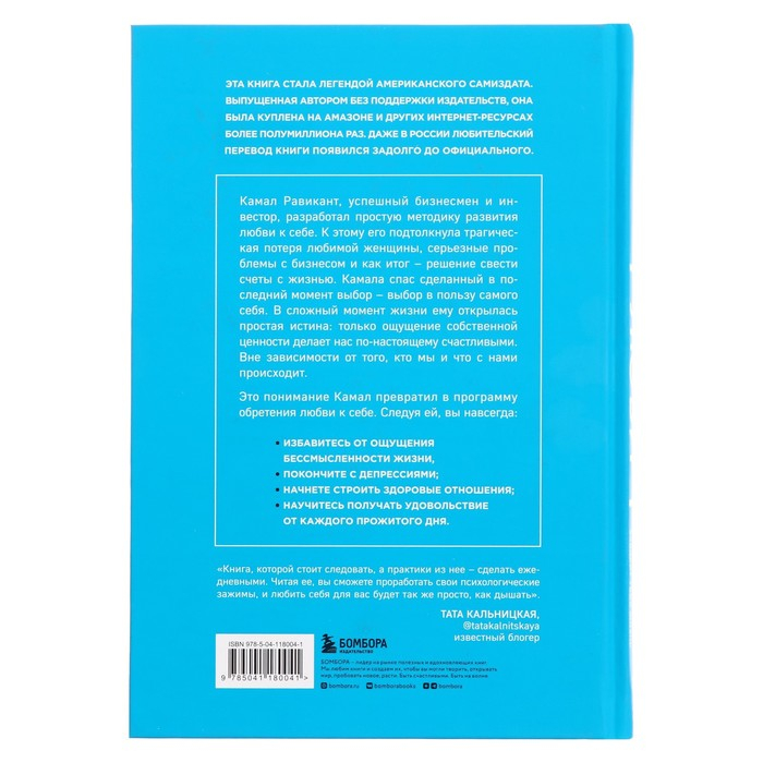 Камал Равикант, успешный бизнесмен и инвестор, разработал простую методику развития любви к себе. К этому его подтолкнула трагическая потеря любимой женщины, серьезные проблемы с бизнесом и как итог решение свести счеты с жизнью. Камала спас сделанный в последний момент выбор - выбор в пользу самого себя. В сложный момент жизни ему открылась простая истина: только ощущение собственной ценности делает нас по-настоящему счастливыми. Вне зависимости от того, кто мы и что с нами происходит.