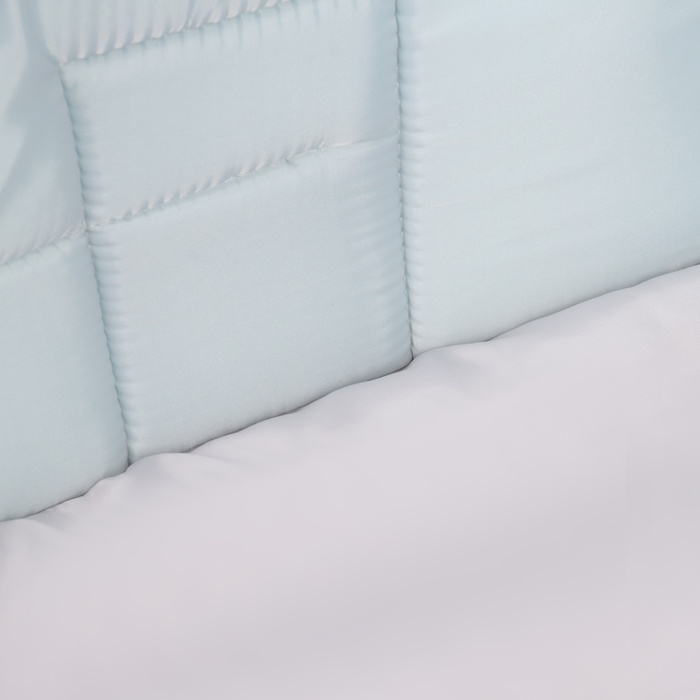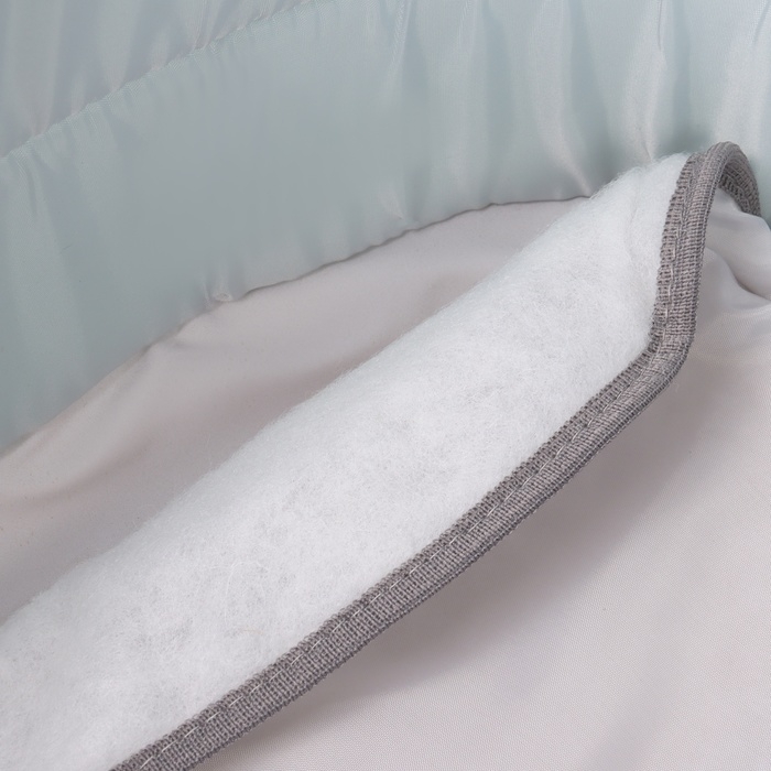 Люлька-переноска из плащевой ткани со съемным капюшоном. Капюшон крепится к сумке на 3 кнопки. Крышка съемная, пристегивается к сумке на разъемную молнию. По крышке выполнена стежка 2 мя фигурными строчками. Все срезы обработаны окантовочной тесьмой. В днище сумки есть карман под жесткий вкладыш-дно. Подкладка таффета, наполнитель поролон, синтепон. Бортики у люльки не жесткие, специально, что бы можно было переноску вставлять в коляску. Размер 30х68см. Высота борта 16см. Глубина капюшона 16см. Состав: п/э 100%.