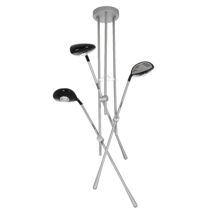 Люстра «3 клюшки» 65 × 75 см, 3 × 10 Вт, алюминий, пластик, свечение тёплое белое