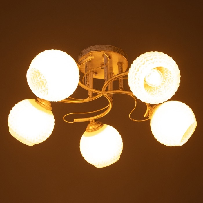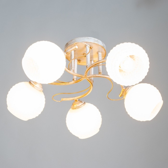 Люстра "Амелия" 5х60вт Е27 бело золотой 46х46х22см