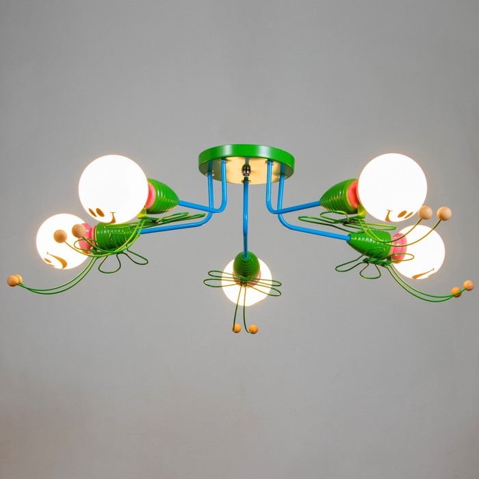 Люстра "Букашки" 5хЕ27 зеленый 68х68х25 см BayerLux