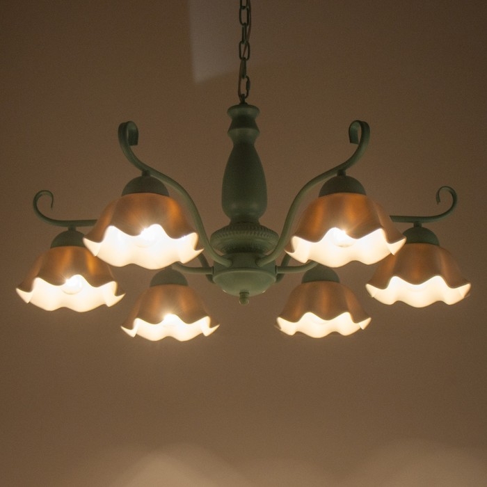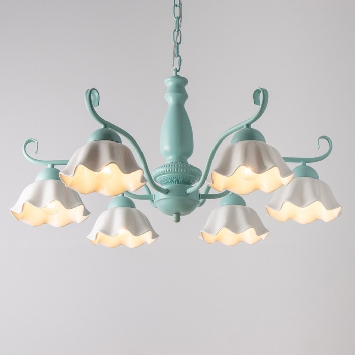 Люстра "Лукреция" 6хЕ27 40Вт зелено-белый 77х77х37-72 см BayerLux