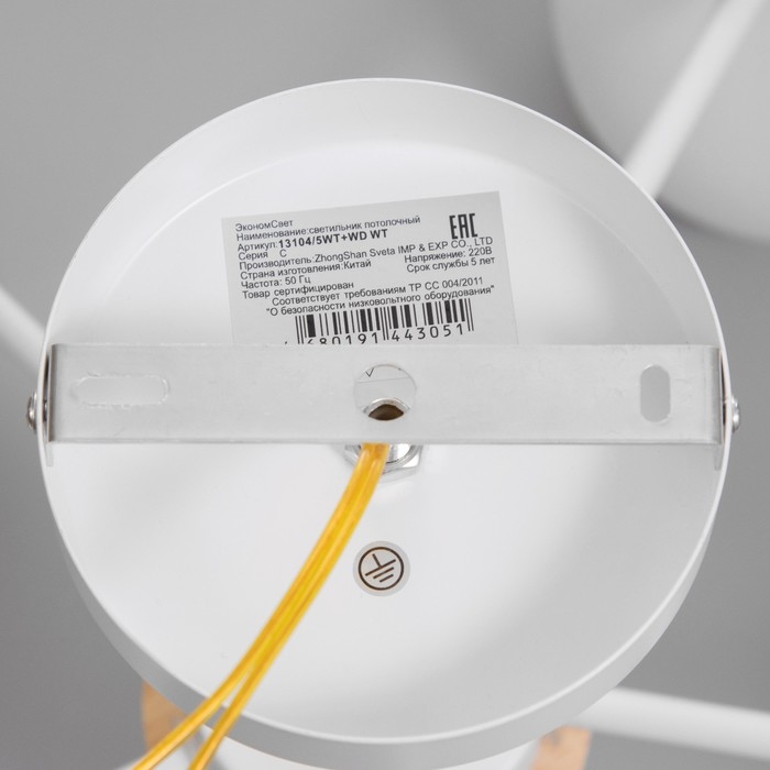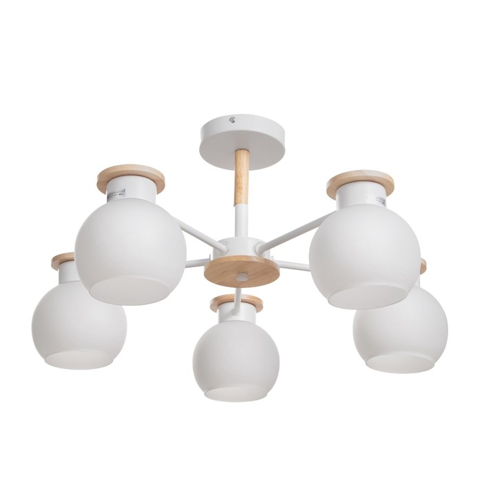 Люстра "Паула" 5х60Вт Е27 Белый, дерево 58х58х30см