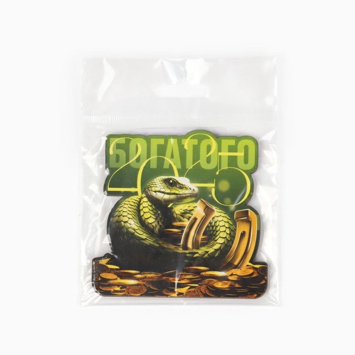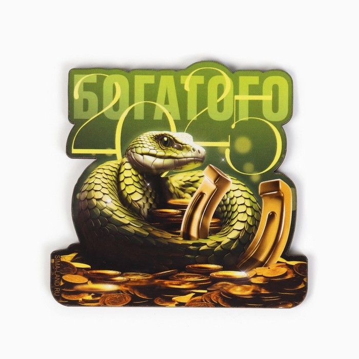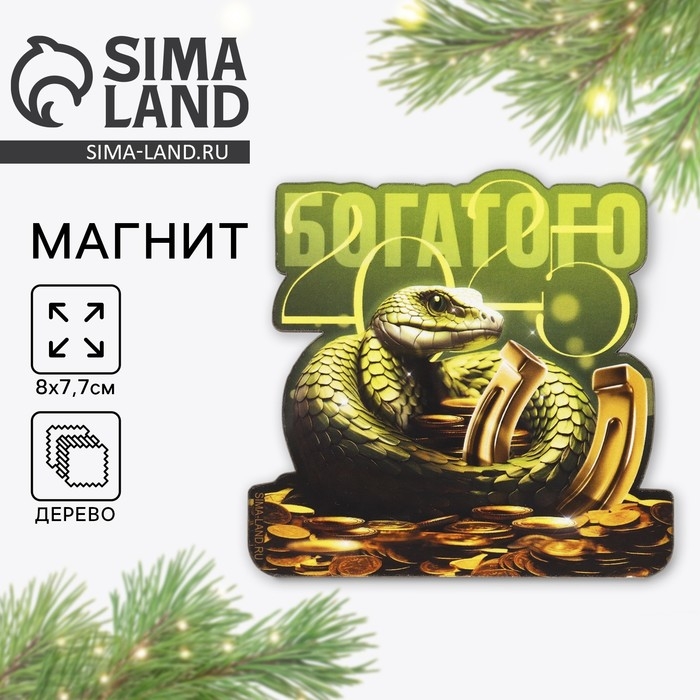 Магнит новогодний деревянный «Новый год: Богатого 2025», 8 х 7.7 см