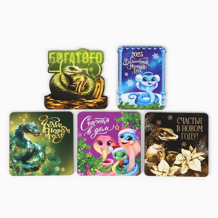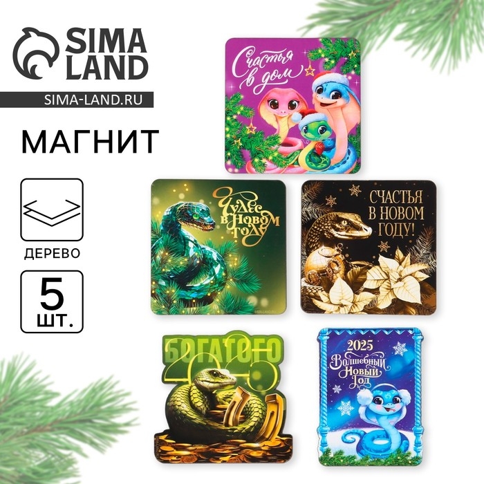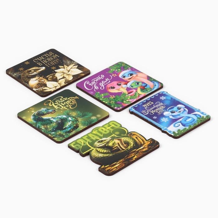 Магнит новогодний деревянный «Новый год: Новогодний», МИКС из 5 шт