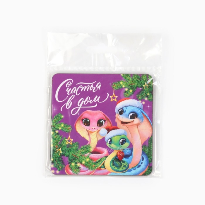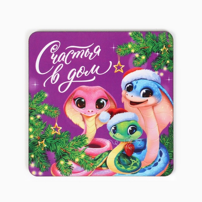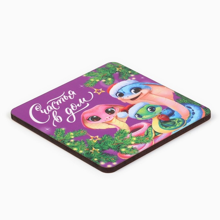 Магнит новогодний деревянный «Новый год: Счастья в дом», 8 х 8 см