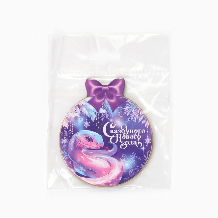 Магнит новогодний деревянный «Новый год: Сказачного года, змейка», 6.9 х 8 см