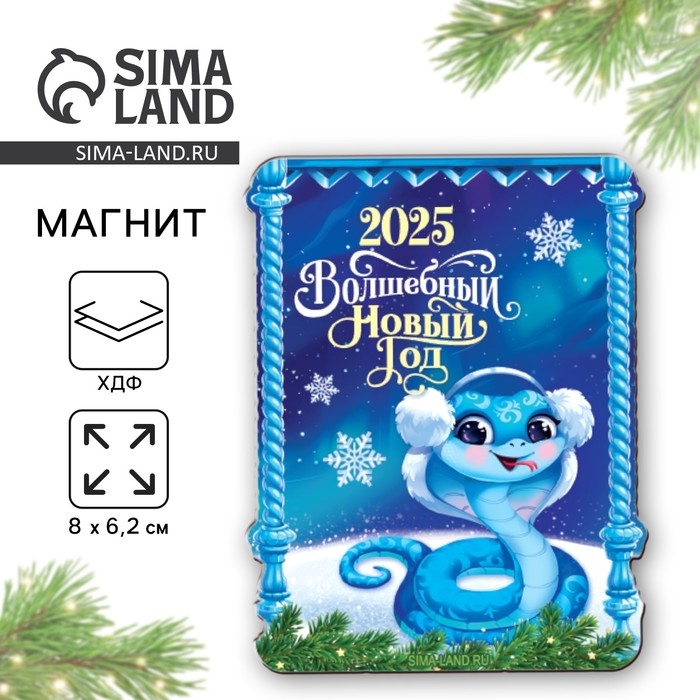 Магнит новогодний деревянный «Новый год: Волшебный 2025», 6.2 х 8 см