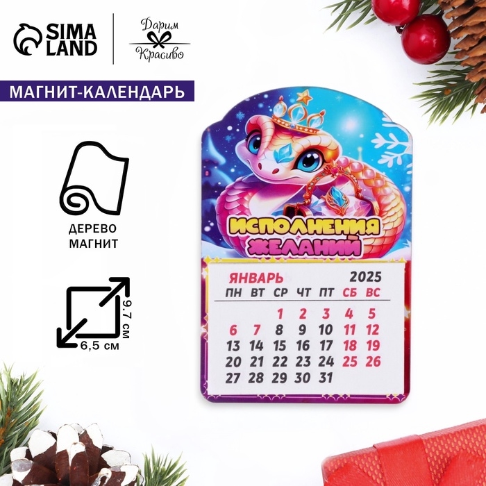 Магнит новогодний календарь "Символ года 2025.Исполнения желаний!", 12 месяцев