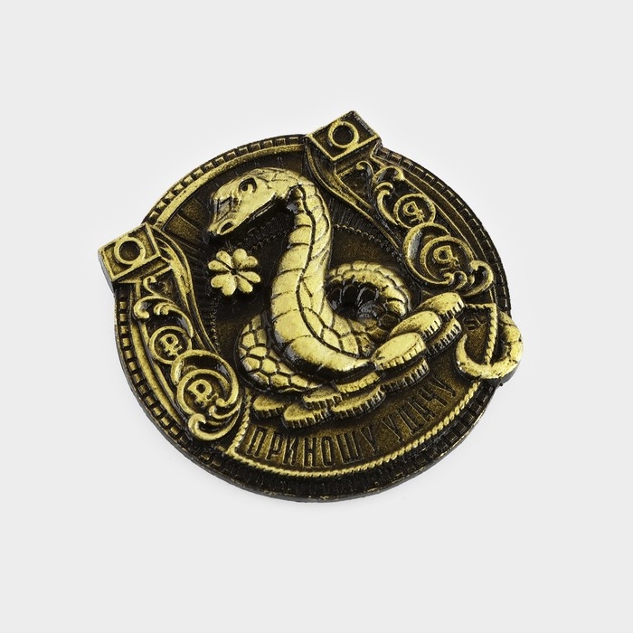 Магнит новогодний «Приношу удачу» на Новый год на Новый год, диам. 4 см, зол